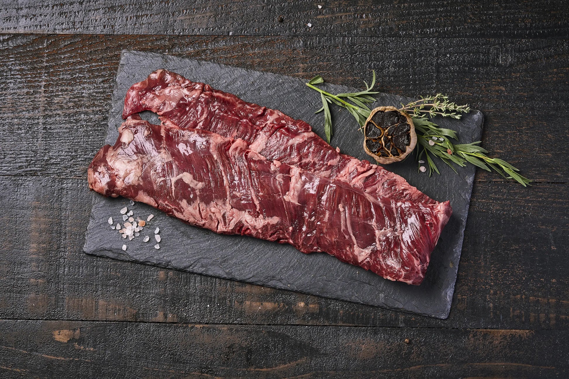 Long, thin, and packed with flavor, Skirt Steak is beloved for its bold beefy taste and versatility. Best cooked quickly over high heat, it is perfect for fajitas, stir-fries, or sliced thin for steak salads.